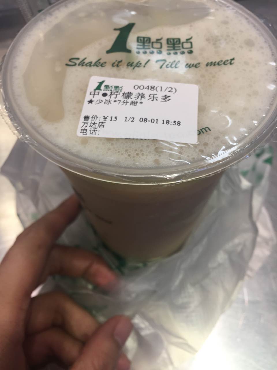 超爱红茶玛奇朵,每次都点这个味道!老公喜欢喝柠檬养乐多,加冰的说喝起来酸爽!