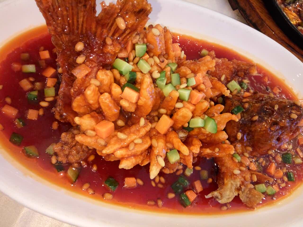 去的时候很早,服务员还在吃饭呢!→_→松鼠鲈鱼很好吃!酸酸甜甜的符合我的口味!总而言之是好评的