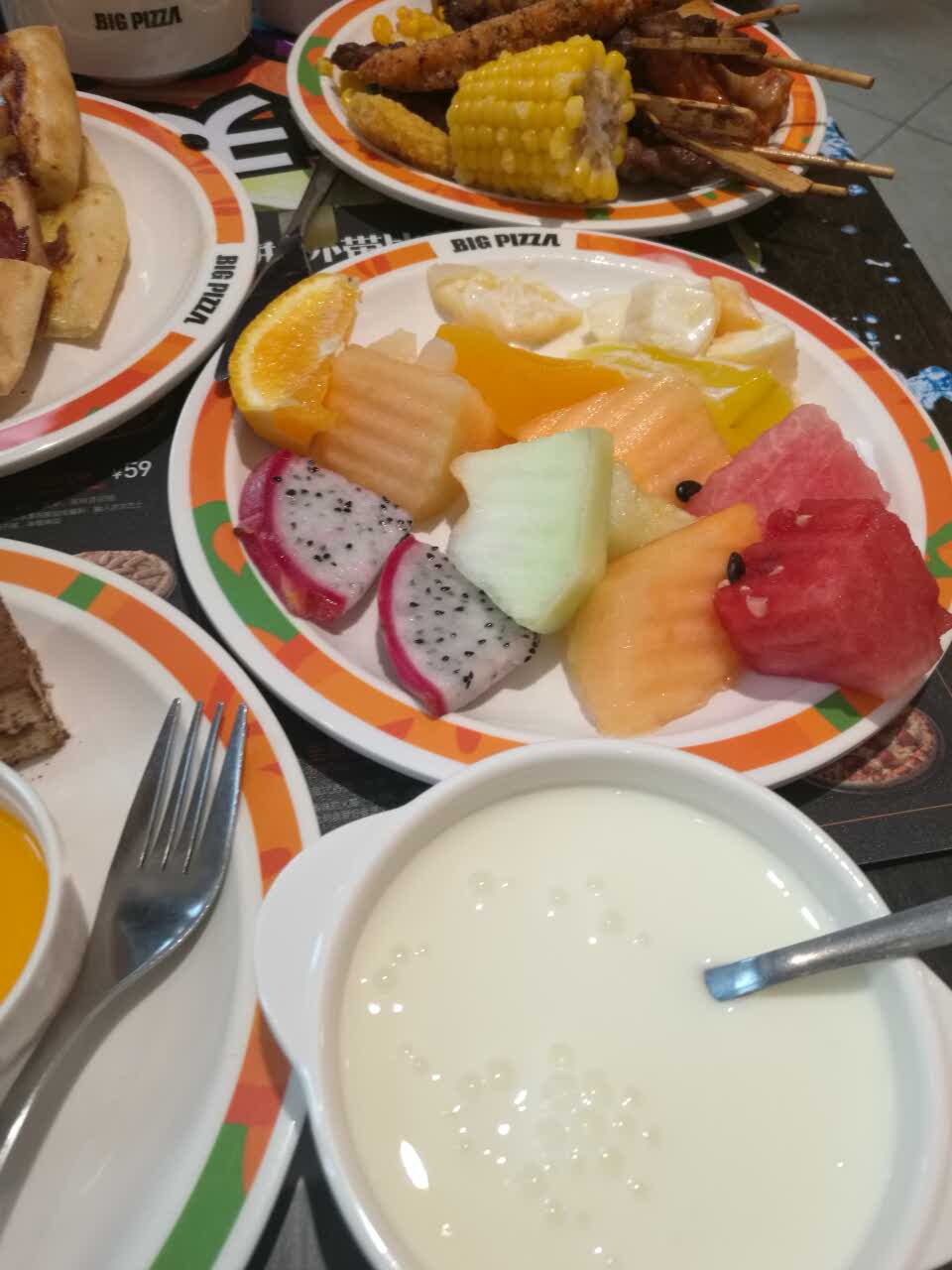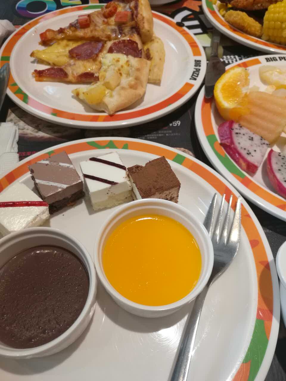 还不错,就是比以前贵多了,不过比萨品种多了不少,榴莲比萨,巧克力比萨等等