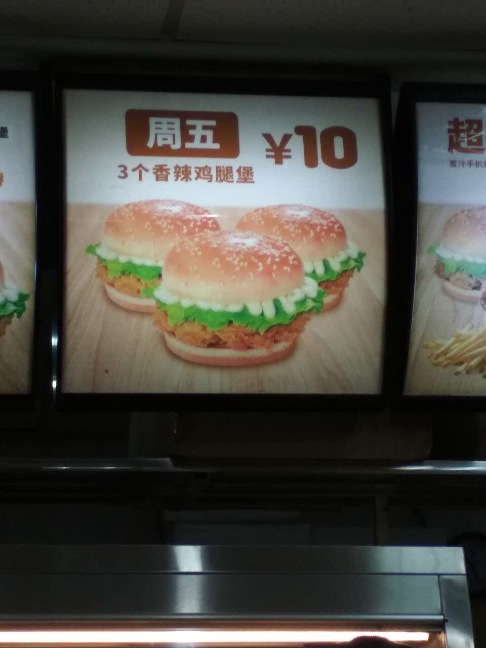 很优惠,3个汉堡10元,还有新品鱼排,应该味道不错!!!