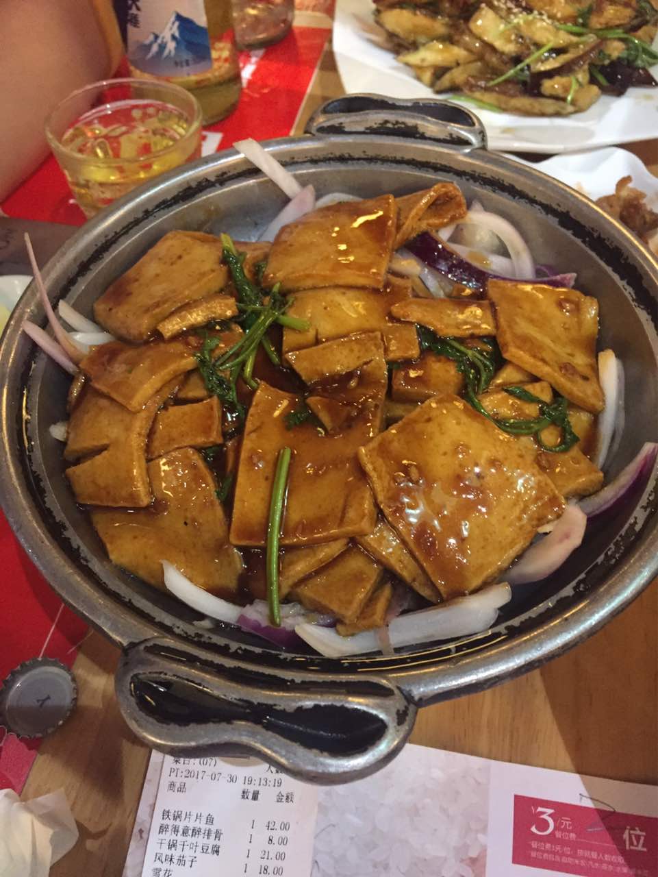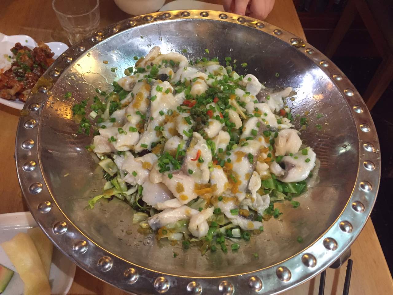 看了口碑评价选择了这家店,真的很棒。三口人点了这么多,米饭和水果还有饮料3元/位自助