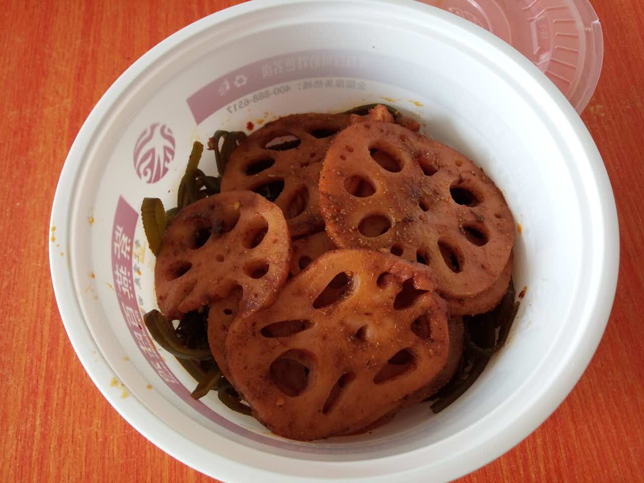 买了辣和不辣两种口味的鸡爪,还有海带和藕片,味道不错哦