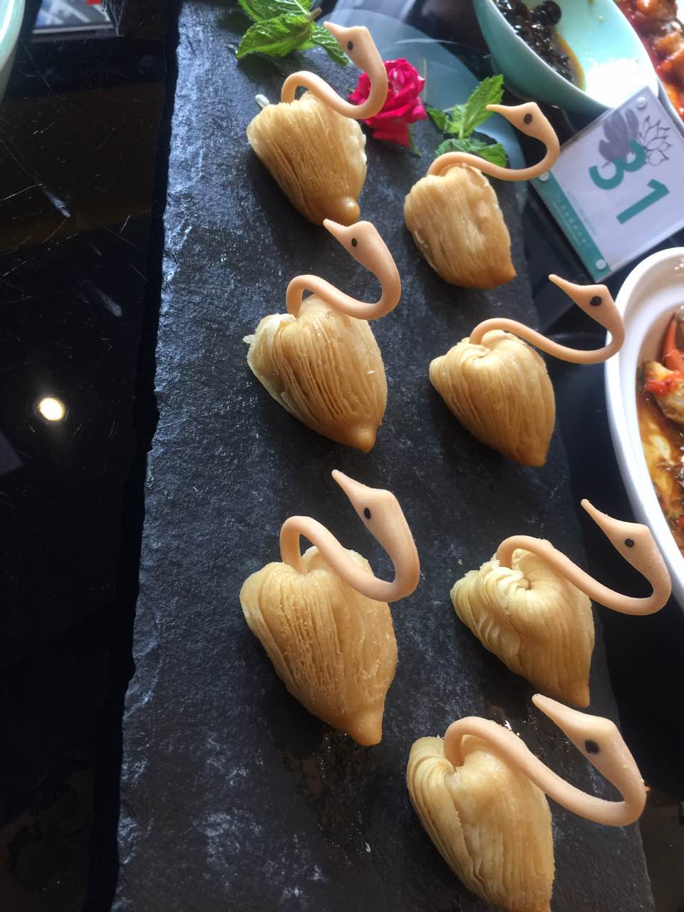 菜的味道都很好吃,连我这个不爱吃榴莲的人都觉得这个榴莲酥不错,红烧肉沾海苔粉棒呆了