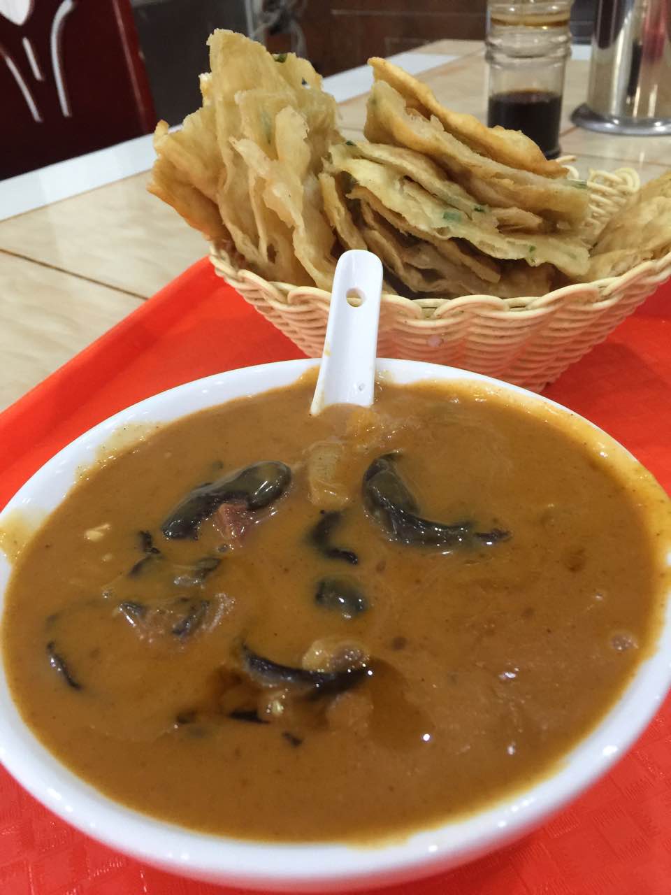 跟洛阳胡辣汤味道不一样,这个好吃,有股淡淡的膻味,胡椒味浓。昨儿没吃过瘾今儿又来了,汤好喝太少,面筋多。