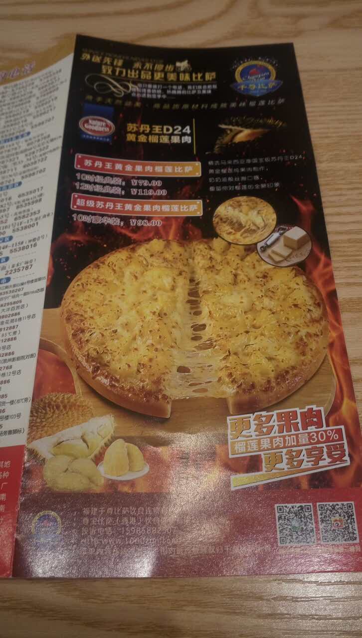 味道很好,千尊的榴莲披萨确实是好吃,加了菠萝