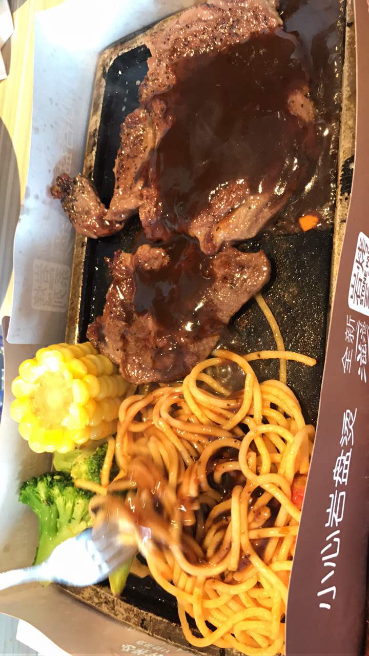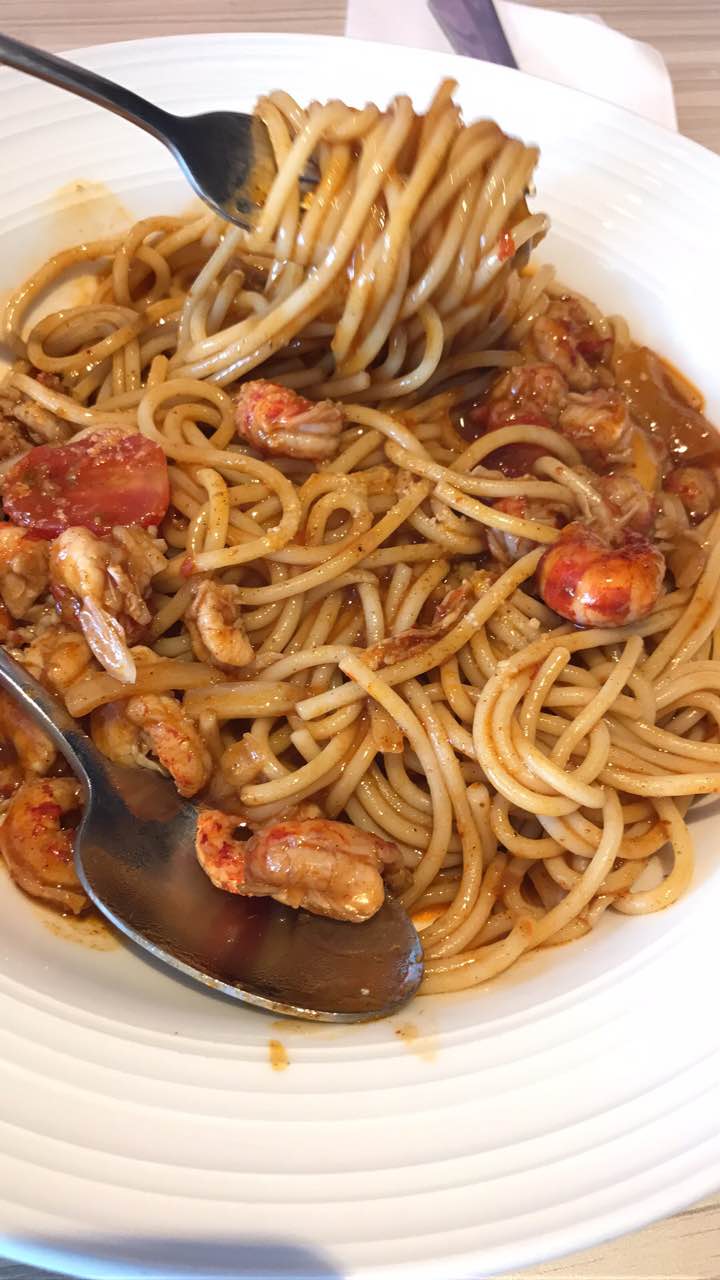 两个小朋友吃得特别开心!新品麻辣小龙虾意大利面好爽,极力推荐噢!