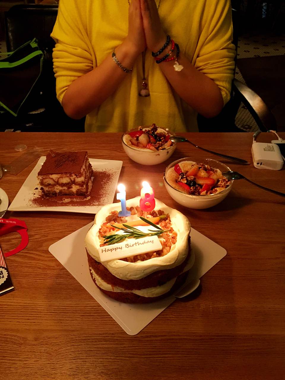 生日快乐生日后的日子会越来越美好选了心心念念的胡萝卜蛋糕--大地女神教练破例允许晚上自由发挥,...
