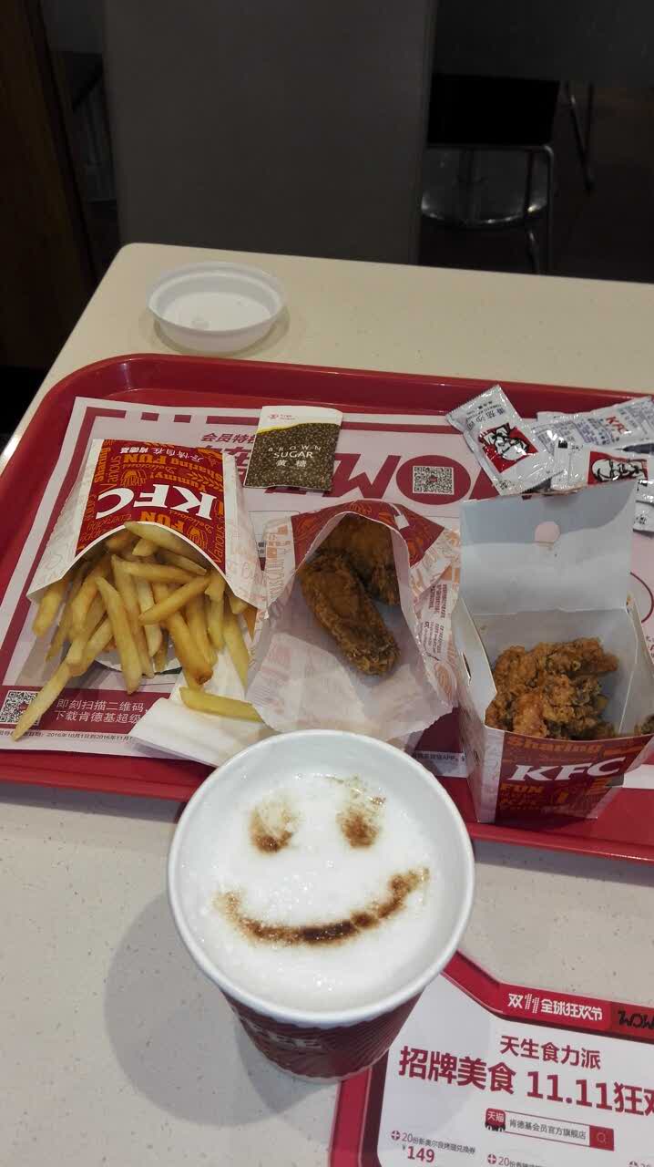 就在上海科技馆地铁站站内。初冬的夜晚很疲劳的转乘地铁时,发现它。周三肯德基会员很多优惠,这家店很大,很明亮很宽敞,深藏在一个不仔细看就会忽略的一隅。柳暗花明的感觉。晚上人很少了。但服务很好。店挺干净,也很宽敞明亮。吃一些小食,玉米饮。。。等抚慰一下疲惫的身心。(^_^) 吃好继续转乘地铁。蛮不错的。中间累了的旅人,都适合在这小憩一下哈~~
