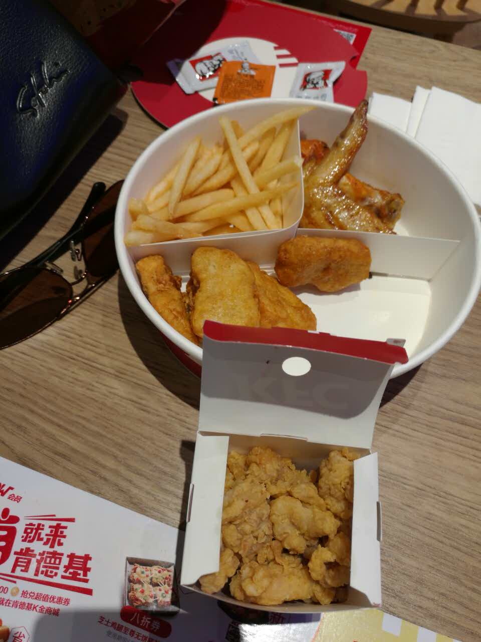 小食拼盘,你不可遗忘的肯德基美食。有黄金鸡块,有新奥尔良烤翅,有鸡米花,有薯条