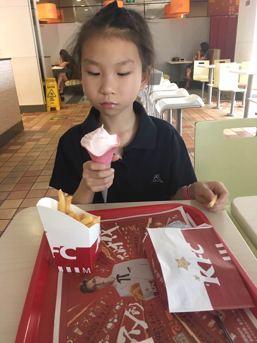 现推出手机自助点餐,免排队,不错。今天为儿子庆祝考上比较理想的中学,并为女儿补过迟到了一个月的生日,很开森
