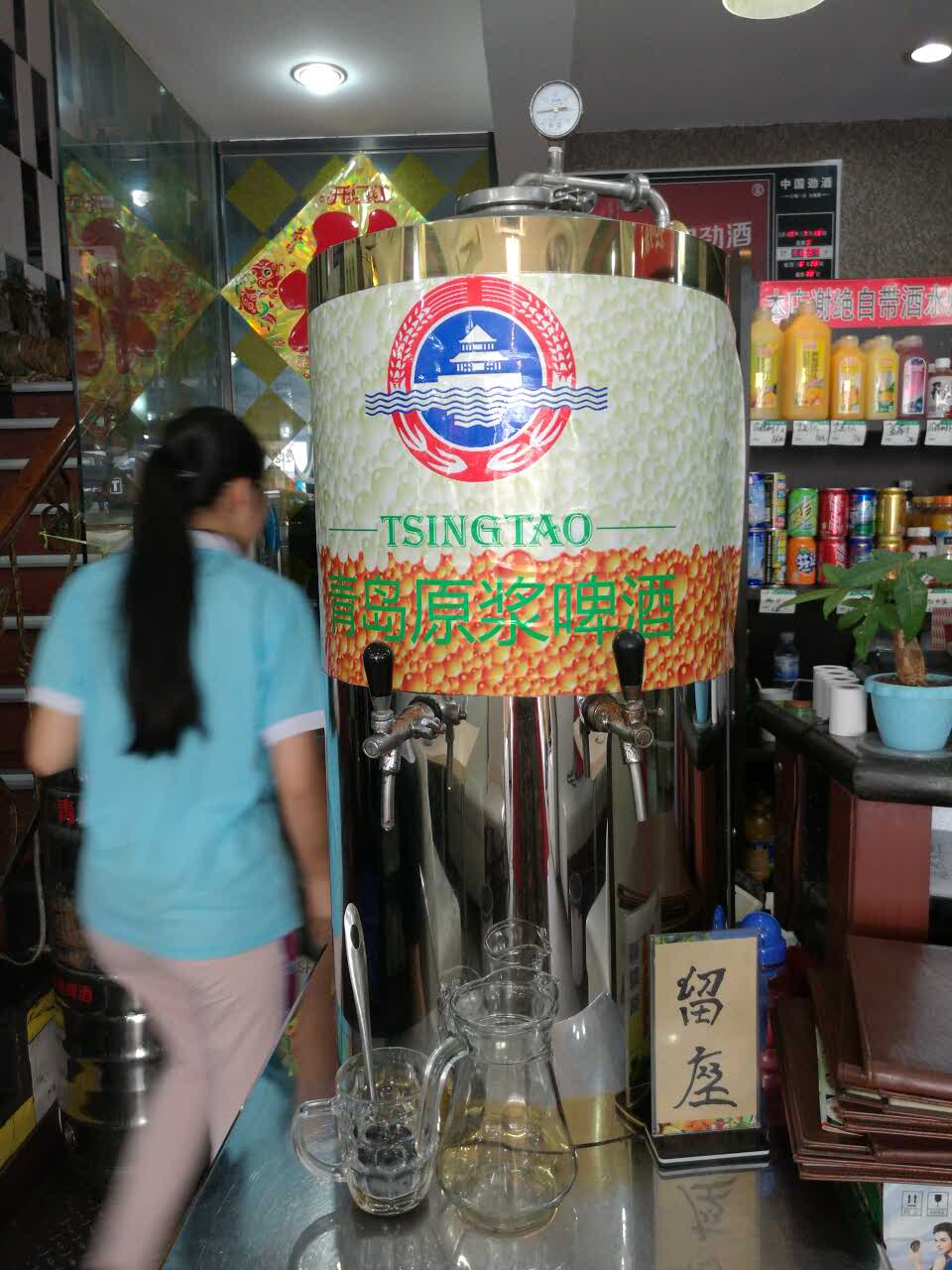 一个人走过路过进去吃饭,菜不知道好吗?等待着,先喝杯青岛原浆啤酒,