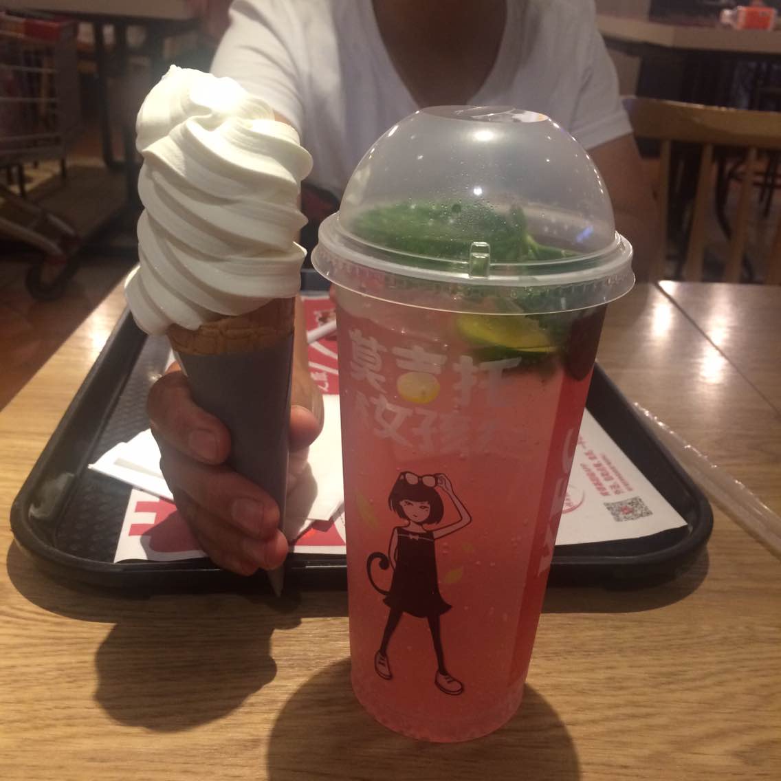 薄荷的味道很足,喝起来很爽口。气散发了之后甜甜的也很好喝。甜筒比以前大了,好满足!