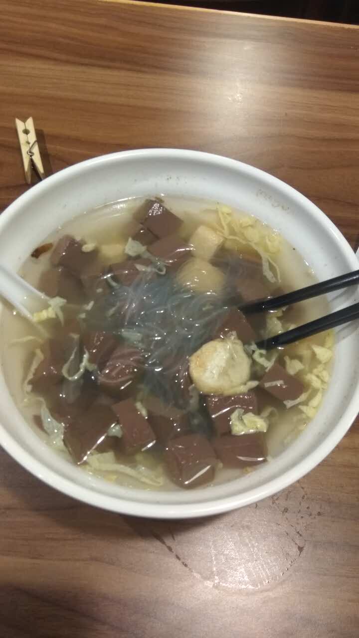 鸭胗血汤,既然鸭胗写在前面,应该料是最多的,但其实只有一朵朵。油豆腐还是酸的,一天世界,再见,再也不见