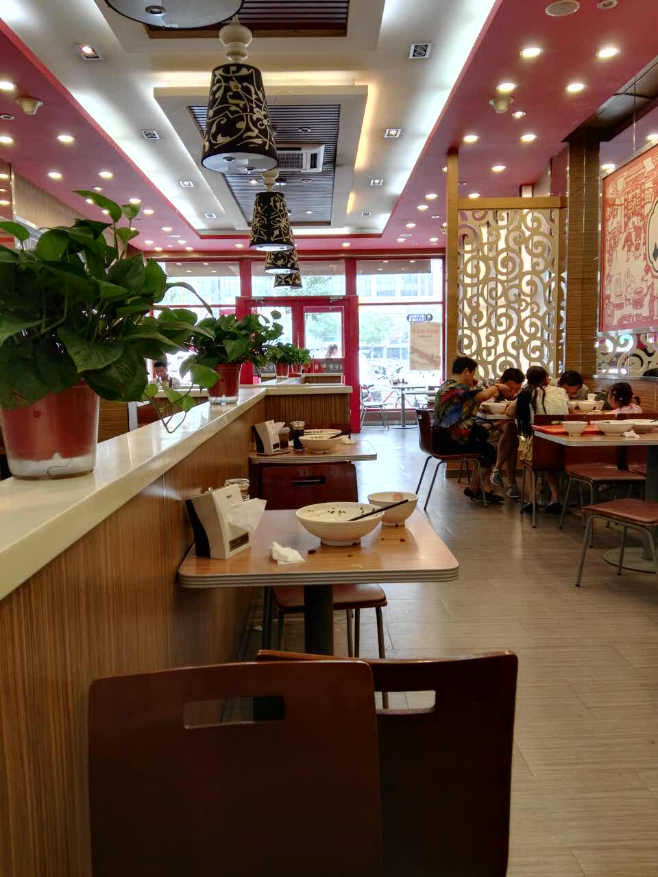 夏季有贴心绿豆汤,面和菜的价格中等,比小饭店贵些,但是环境好。