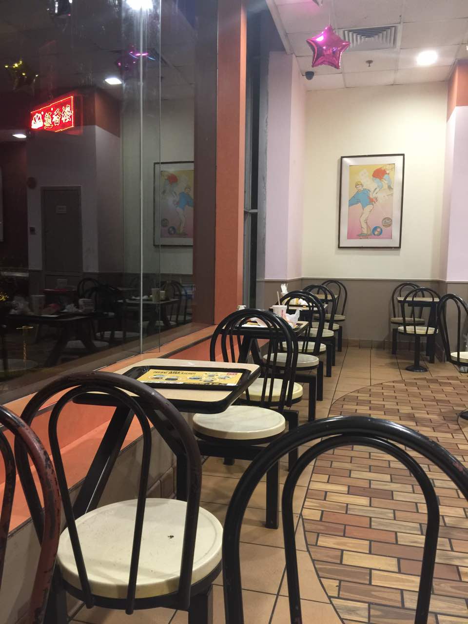 网友2017-06-28...,没有人去清理,二楼晚上12点没有空调,没有抽风,在这么炎热的夏天,你会有种焗桑拿吃汉堡的滋味服务可以,环境就一般般啦,桌面上客人留下的垃圾,没有人去清理,二楼晚上12点没有空调,没有抽风,在这么炎热的夏天,你会有种焗桑拿吃汉堡的滋味