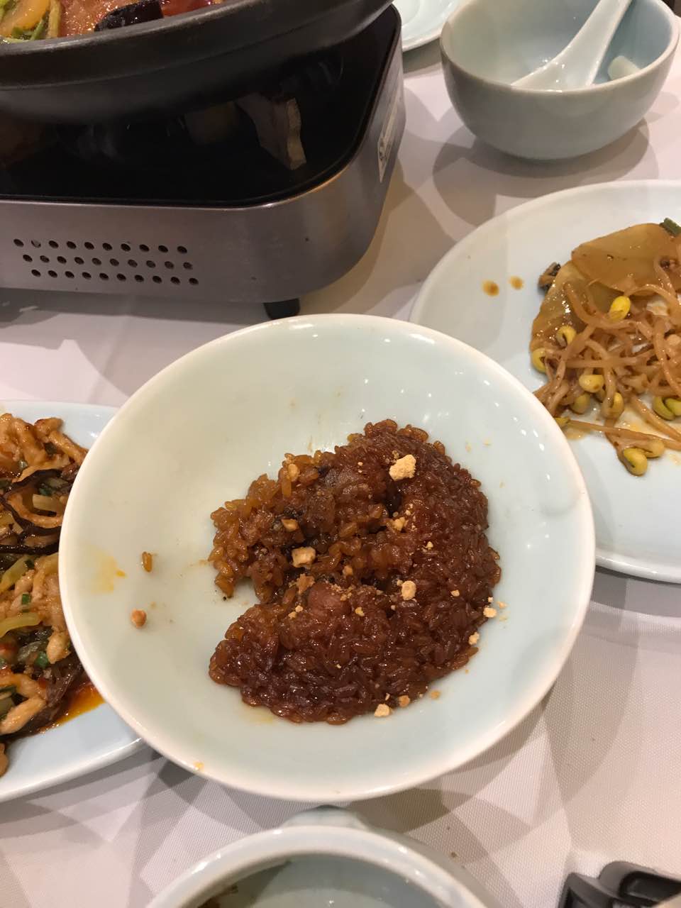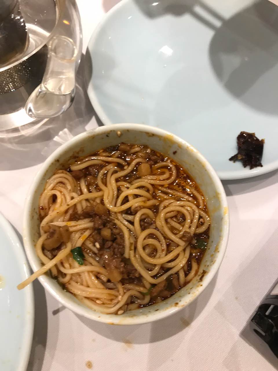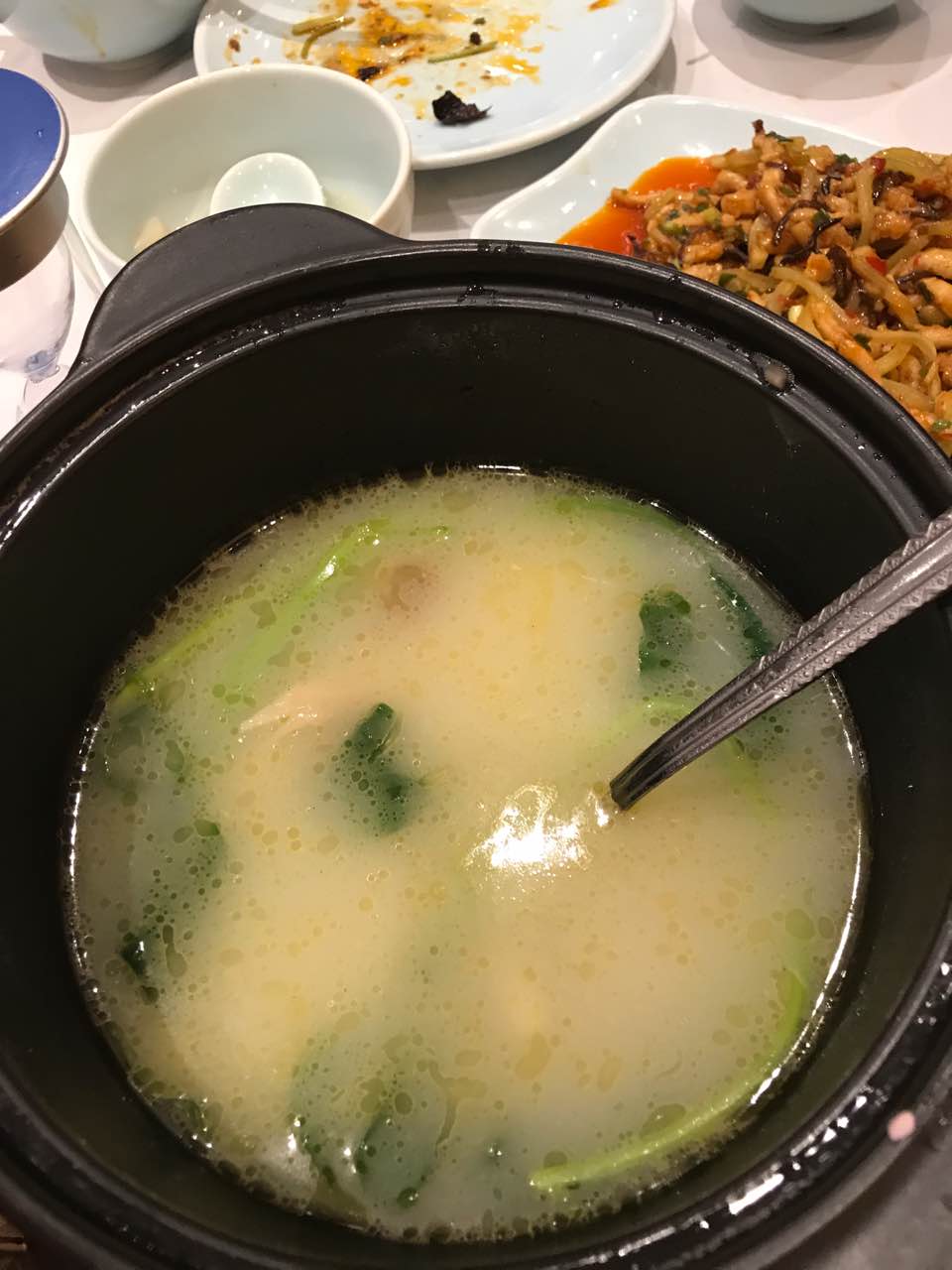 等位有一系列优惠,比如菜品打折;环境可以,可以提前订包间;口味总体来说不失水准也没有很惊艳,一品东坡肉肥而不腻,很欣赏它的营销策略,一位的分量就只有一块,再多估计就肥腻了,菌汤虾滑实在是原汁原味,连盐都没有;经典川菜毛血旺和鱼香肉丝一般,无可圈可点;甜烧白跟老家的做法有差异,它家主要是糯米和黄豆面,分量不大,刚开始几口很香,但仍想念老家带芝麻的做法(ps重庆人);再有就是在北京吃了这么多家担担面,没有吃到记忆里那正宗的味道最后,由于等位8点多才吃上,狼吞虎咽中想起来拍的照卖相看官请将就吧