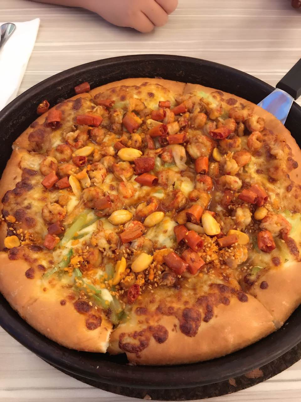 东西很好吃大披萨特别大,都没吃了,还打包了呢!撑的饱饱的