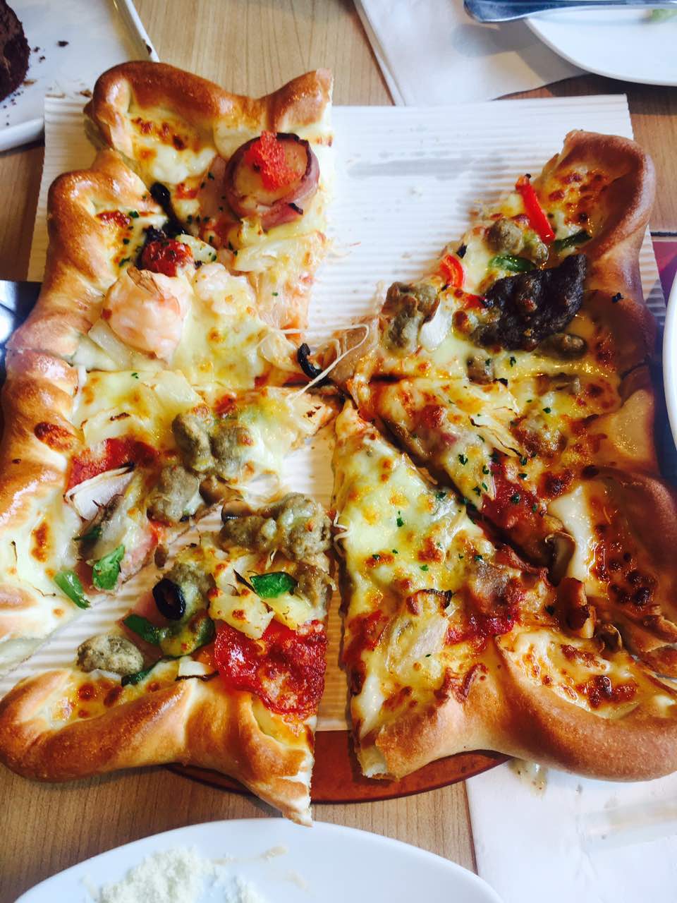 四种口味的披萨 点的套餐 加了个之心边 加19块钱