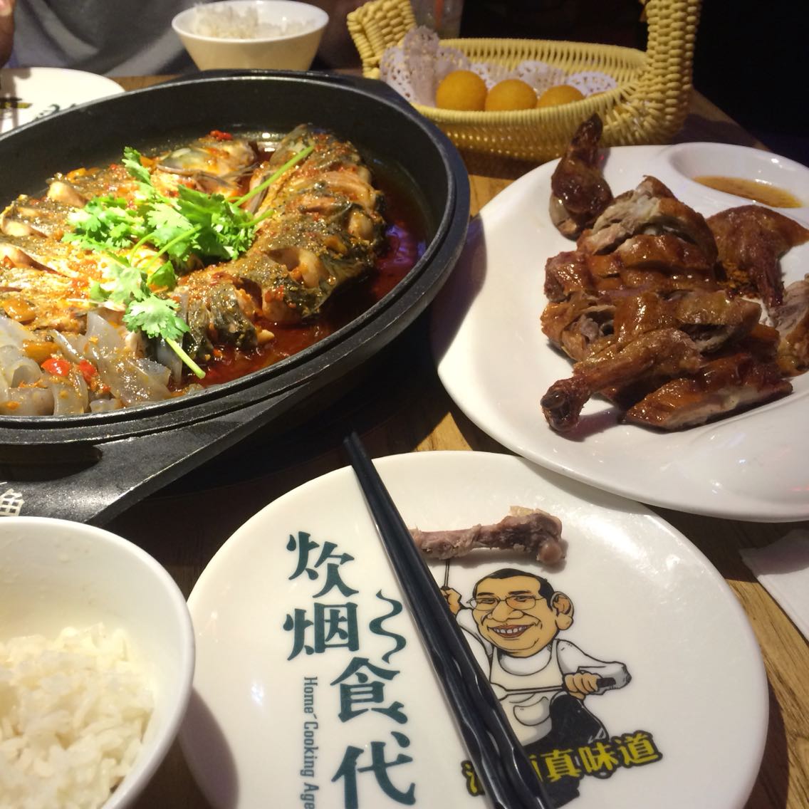 个人感觉炊烟时代气氛还不错,客流量也很高!我和老公都比较喜欢吃烤鸭,皮脆肉香;跳水鱼觉得有些辣,希望可以将鱼类分为微辣、中辣、麻辣等,方便顾客选择!至于饮品没有写于菜单上,但个人觉得绿豆汁不错,还蛮好喝的!总体而言:这家菜品选择性还不错,蛮多样,价格也超实惠!下次还会去,哈哈…
