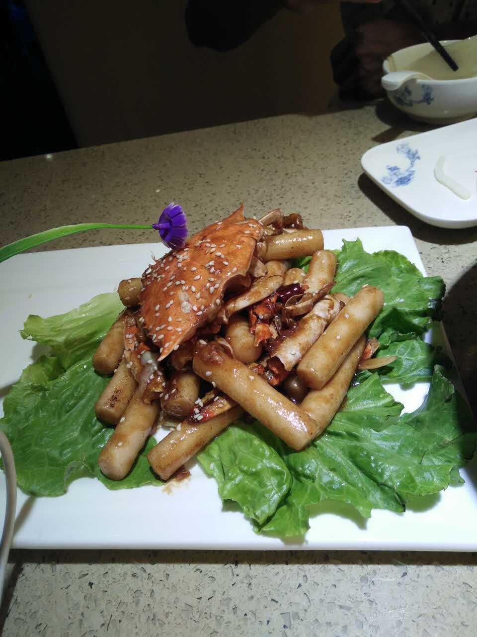 网友2017-07-23年糕炒蟹,味道不错,是一只花蟹,没什么肉,蟹只是一个配料主要还是吃年糕花椒鱼,酸辣麻适中,适合大众口味,个人觉得有点油腻。年糕炒蟹,味道不错,是一只花蟹,没什么肉,蟹只是一个配料主要还是吃年糕。29对得起这个价钱了。