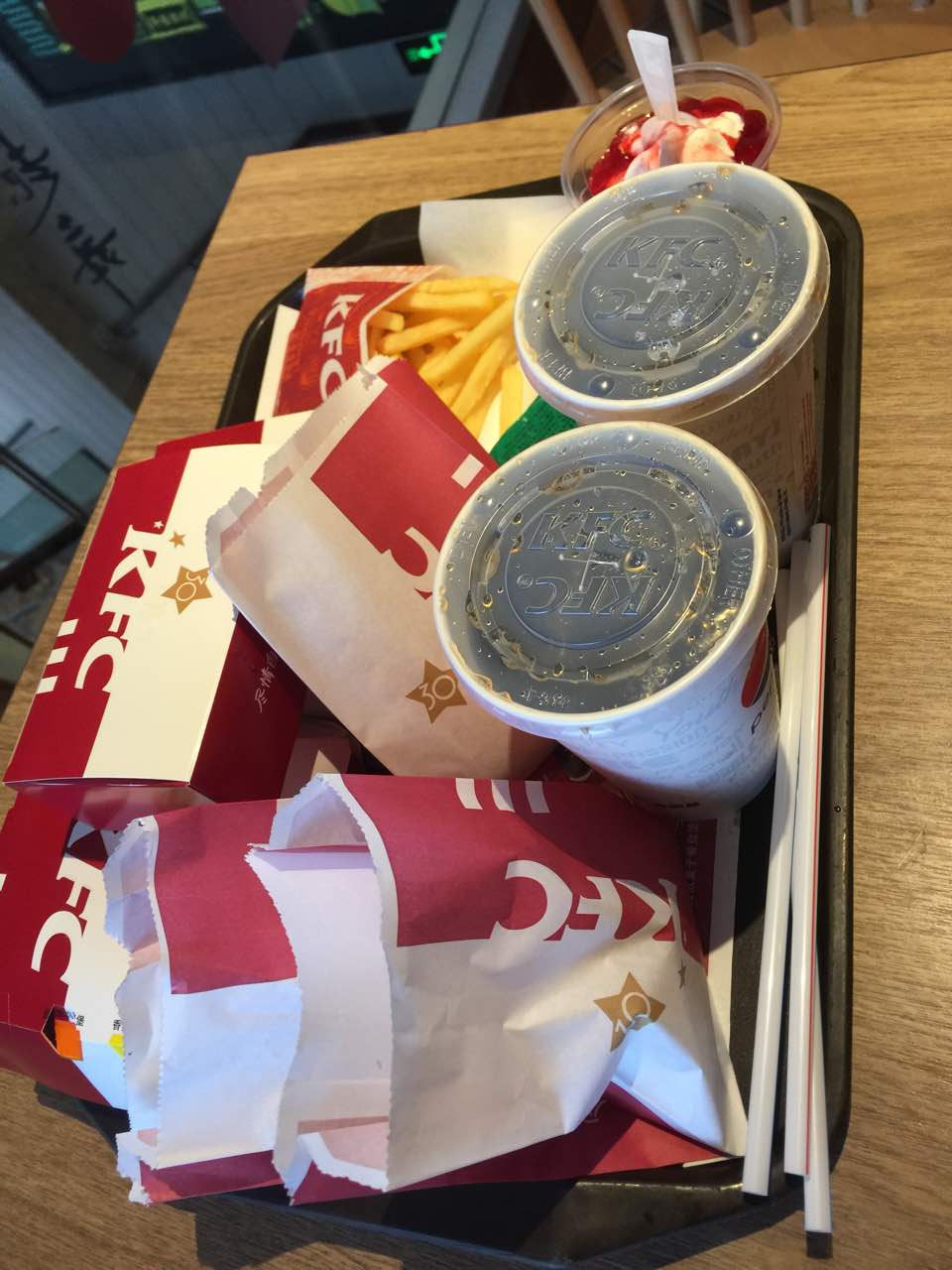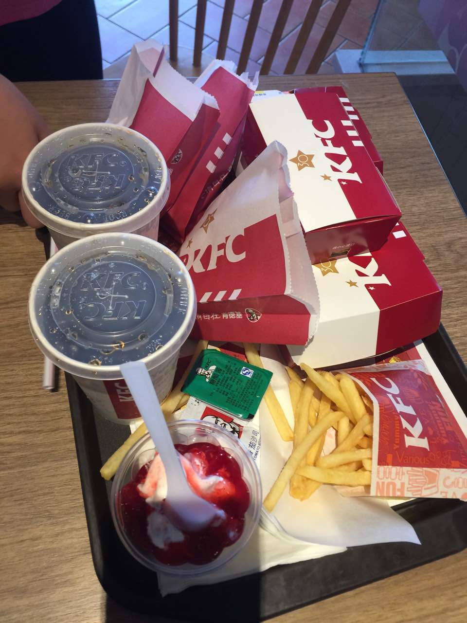 挺好吃的,小朋友也很喜欢KFC的环境,玩得很高兴,鸡腿堡很给力!