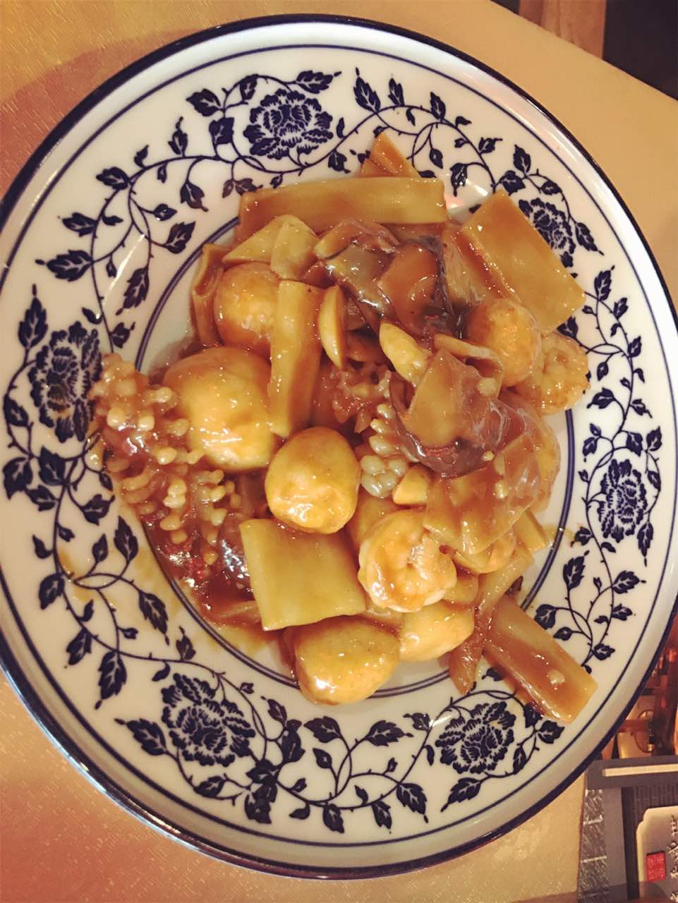 环境在晓月苑附近就算比较好的,今天赶上元旦假期,人比较多,大厅人声鼎沸的。菜品口味比较大众,还不错,3个人200多,价格适中,不过菜量不大,差不多一人一个菜。服务人员比较多,还是比较方便的,要是再细致点就更好了!