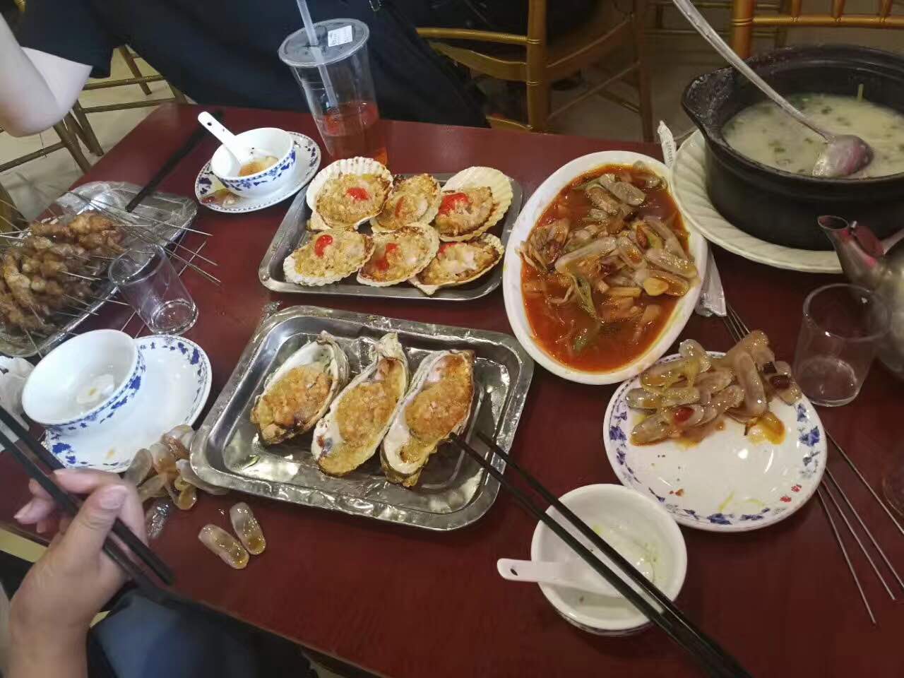 工作日中午去的,一进去没有客人,我们坐定后才陆续来了三拨,但素,还是等了好久菜才一起上来,对,没错,就是一起上的,为啥不是一个一个上?边吃边等多好……蛏子口味不错,羊肉串肥肉有点多了,烤串都不错,其他中规中矩,希望能有活动,价格不便宜呢……