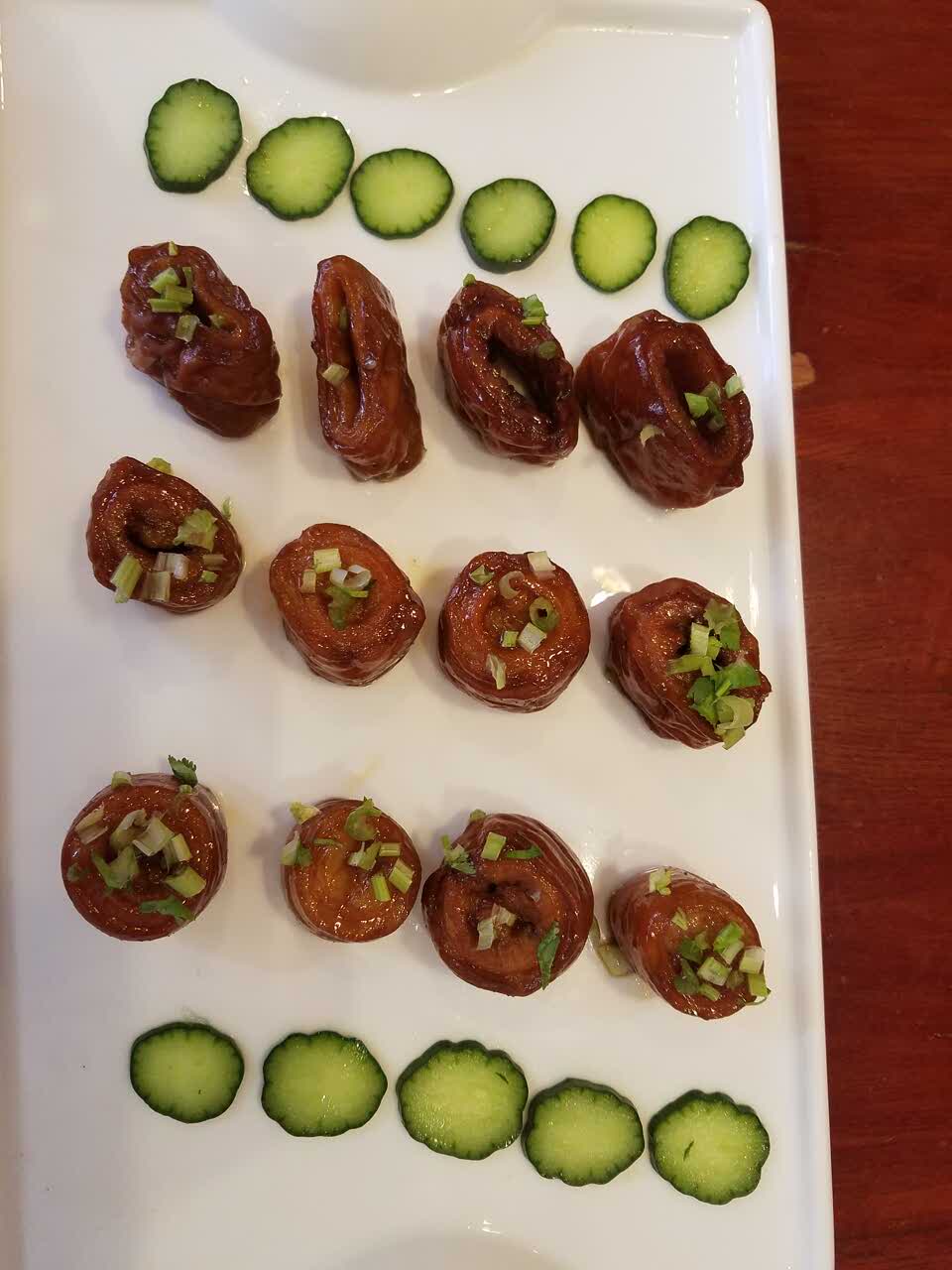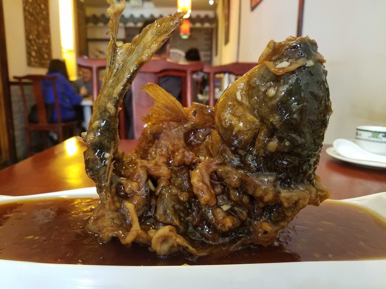 分量太足了。九转大肠是甜的,半份煎饺都是巨大一份~糖醋鲤鱼好吃~