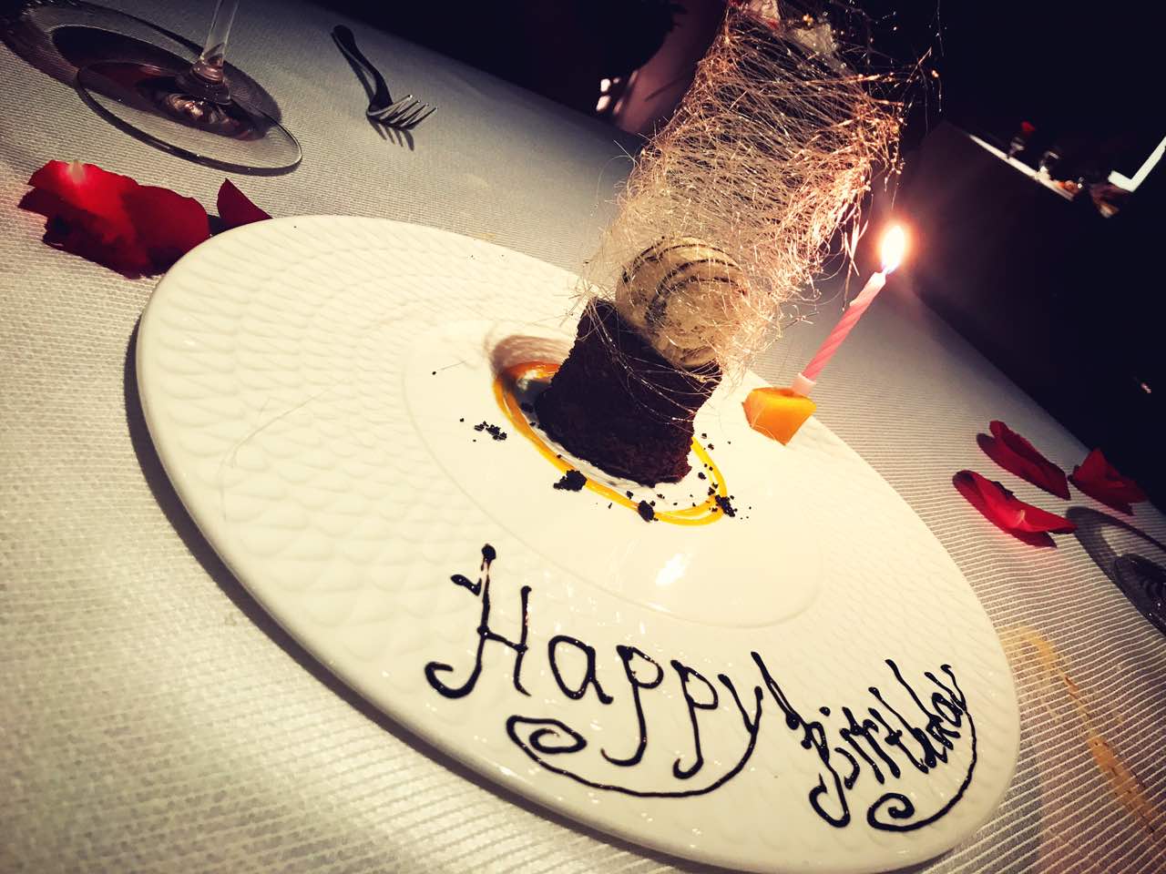 青口很肥美,鹅肝肥而不流,甜品生日送的,气氛不错!