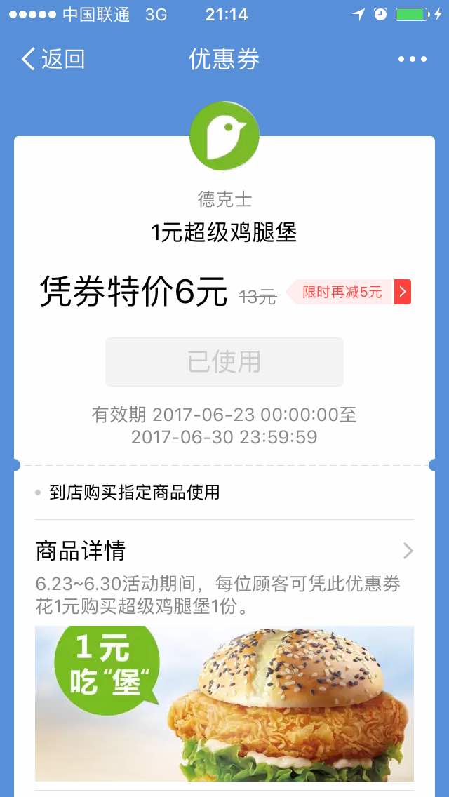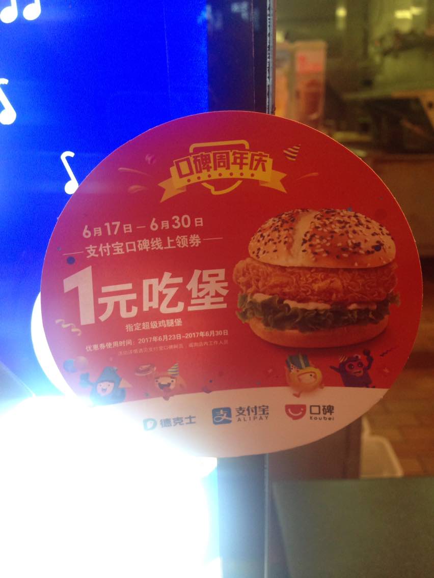 网友2017-06-23该店擅自改变活动规则,强行搭售其它商品才能点1元鸡腿堡,毫无诚信,不尊重合约精神,就是图中人员...该店擅自改变活动规则,强行搭售其它商品才能点1元鸡腿堡,毫无诚信,不尊重合约精神,就是图中人员强行搭售!