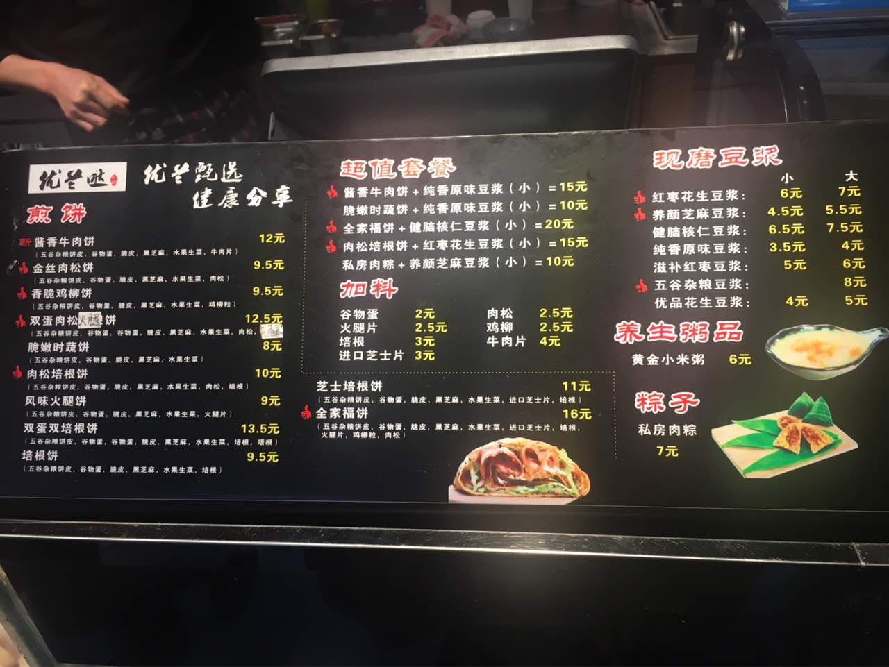 很不错,我们选择了两份全家福饼加上健脑核桃仁豆浆,非常喜欢。推荐,周边还有位置可以坐下休息一会