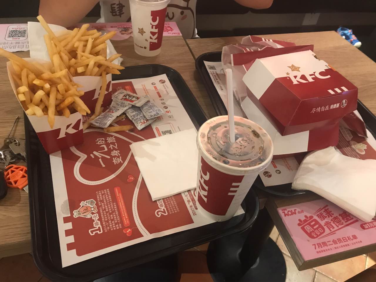 今天点了四份薯条 是真的咸。还有全家桶也咸 除了土豆泥还好 炸鸡翅真心咸到不想吃