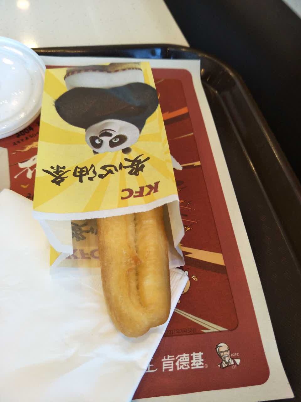 点了一杯热豆浆和油条。他们家的油条比德克士的好吃太多。