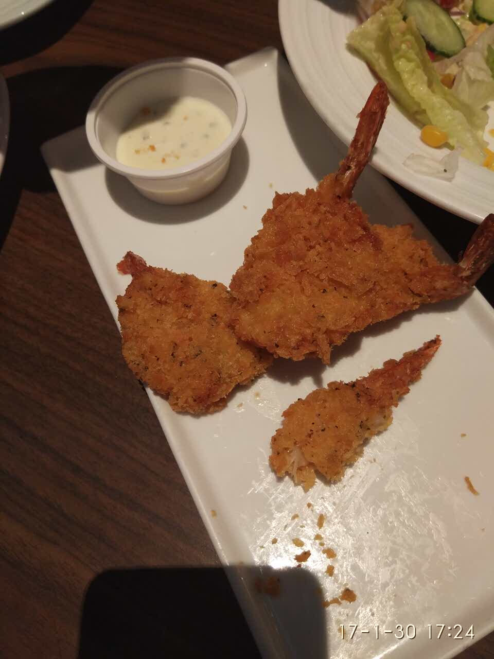 网友2017-01-30...了 颜色太深 菜品都上来了 连餐具都没上 四个服务员全挤一块不知道研究什么东西 这次体验非常差千岛酱上来结 变色的 披萨温冷的 凤尾虾炸过头了 颜色太深 菜品都上来了 连餐具都没上 四个服务员全挤一块不知道研究什么东西 这次体验非常差