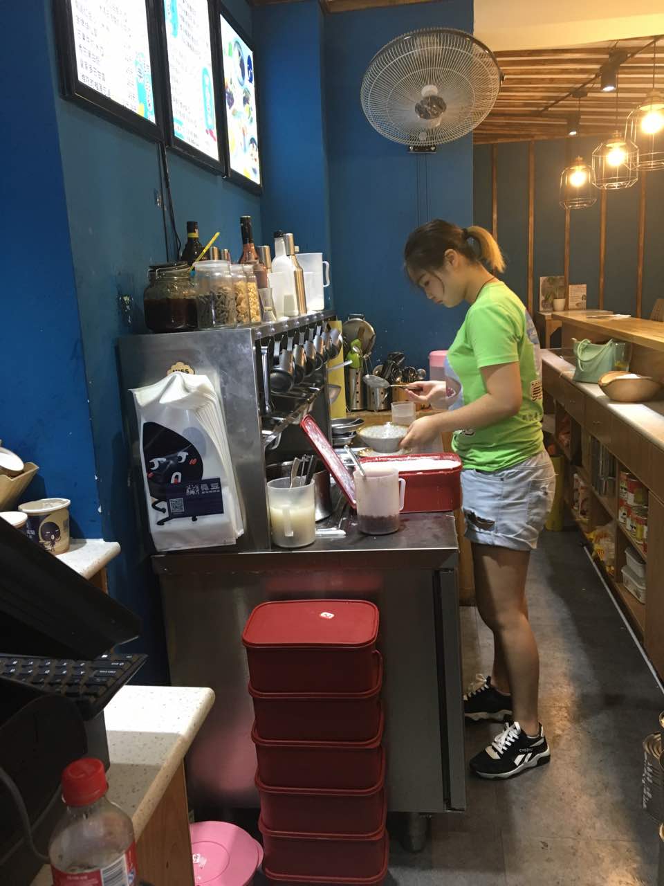 网友2016-10-03...店 非常有特色 味道巴适 环境小清新 服务员妹纸态度也很好 店里面有吧台可以坐 店外面也有外摆经常来吃的豆花甜品店 非常有特色 味道巴适 环境小清新 服务员妹纸态度也很好 店里面有吧台可以坐 店外面也有外摆