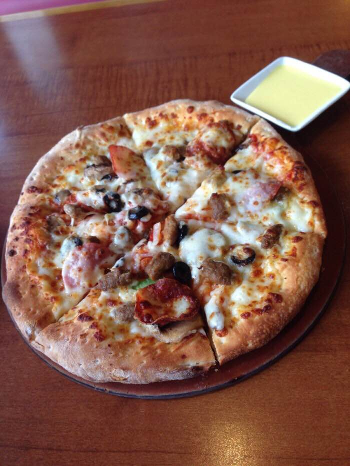 披萨味道很不错。 烤鸭披萨味道很好料狠足。服务也很热情,