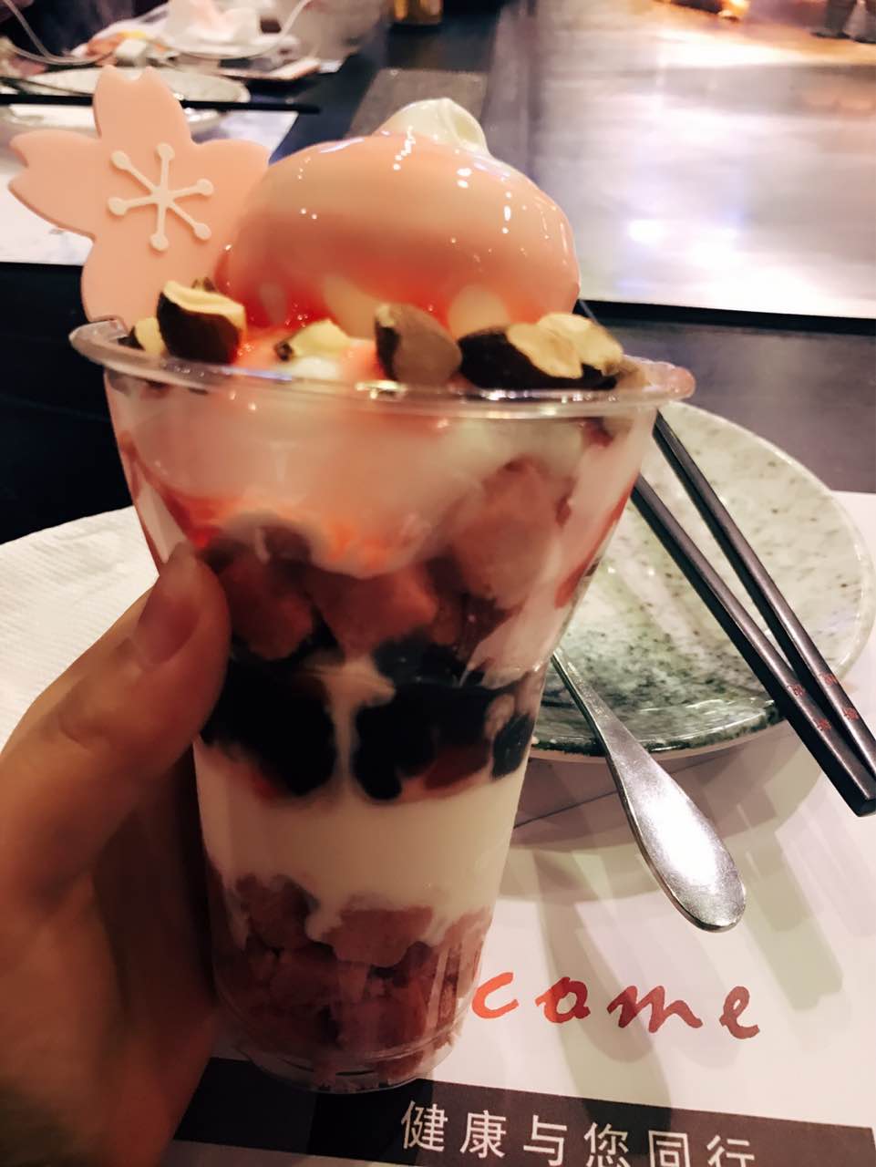 樱花芭菲很好吃,忘记注册会员了,又来排队买了一个