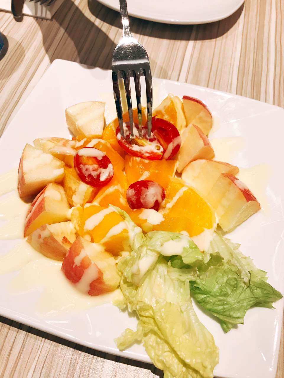 送了薯条,披萨的芝士很好吃,千岛酱也是很不错的!