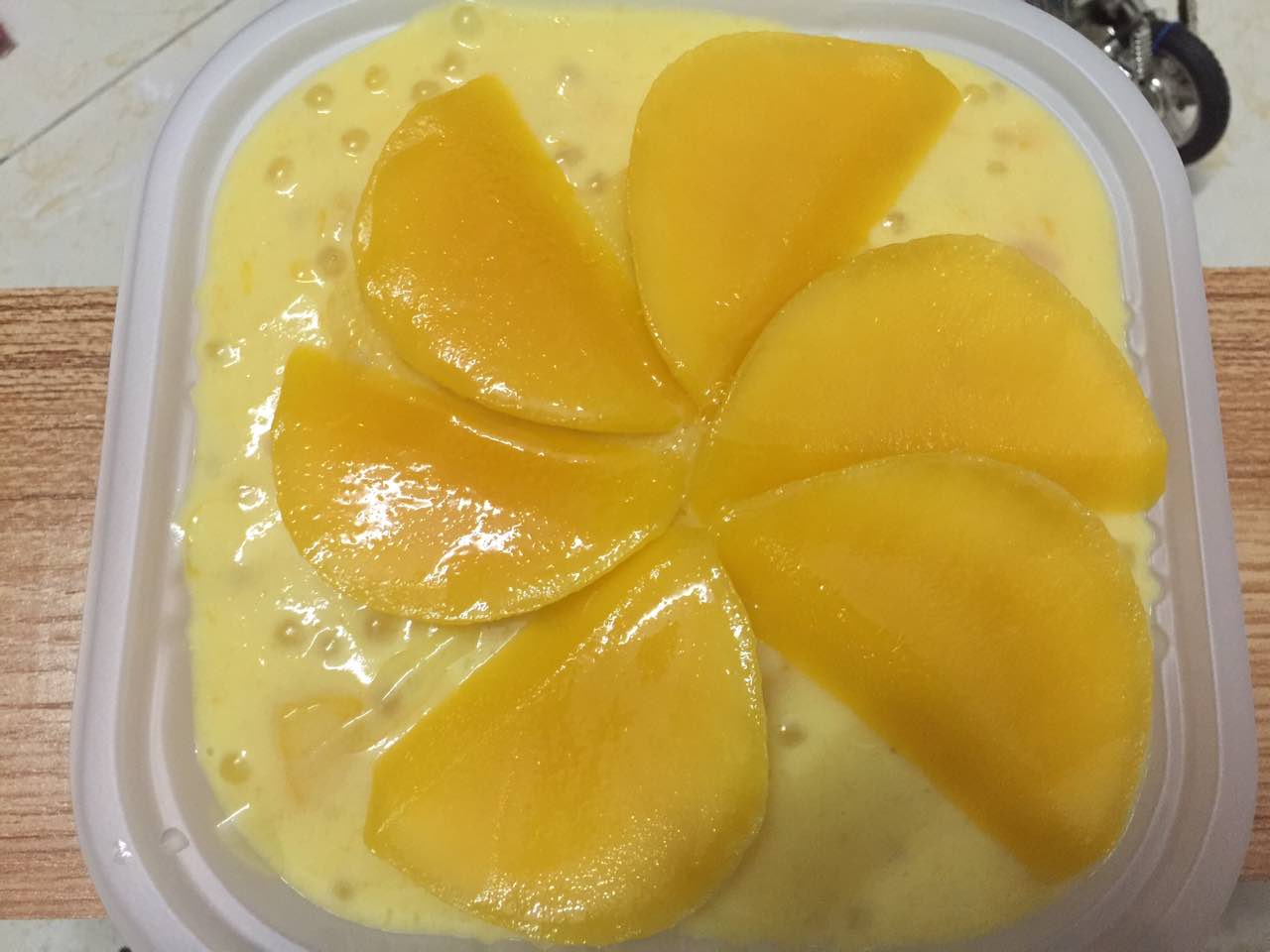 芒果很新鲜,很酸甜。第一次买芒果西米露布甸,口感不错。