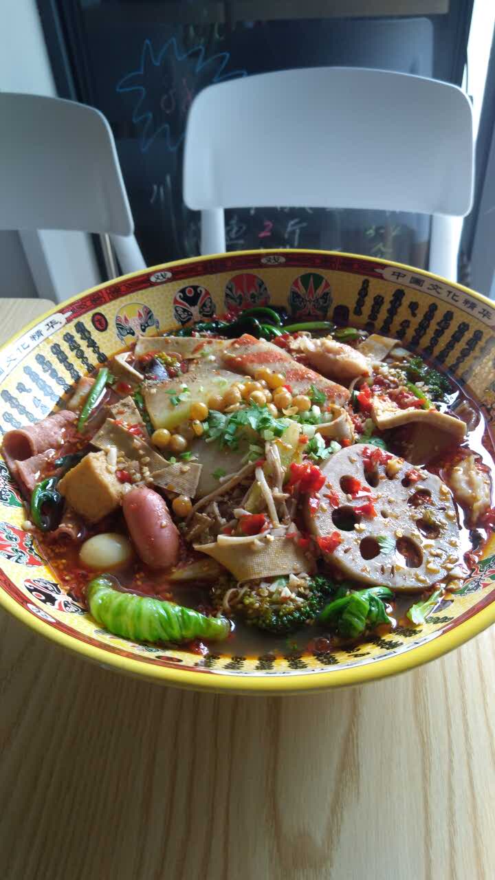 冒菜配酸奶,特辣棒棒哒,就是店里有点热,菜品可以再多一点