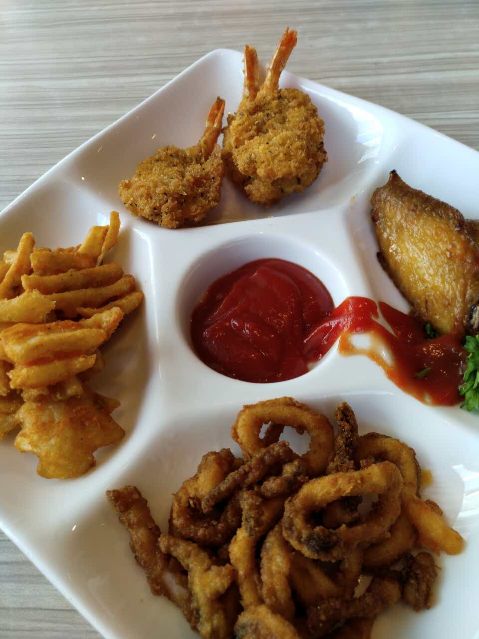味道还可以,千层面,感觉面厚了,芝士好少,香浓菜汤的碗让我很崩溃,小食拼盘的番茄酱跑偏了。。。。。