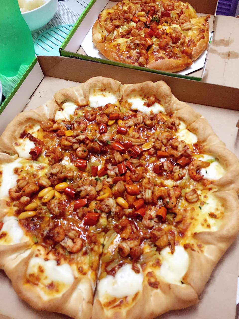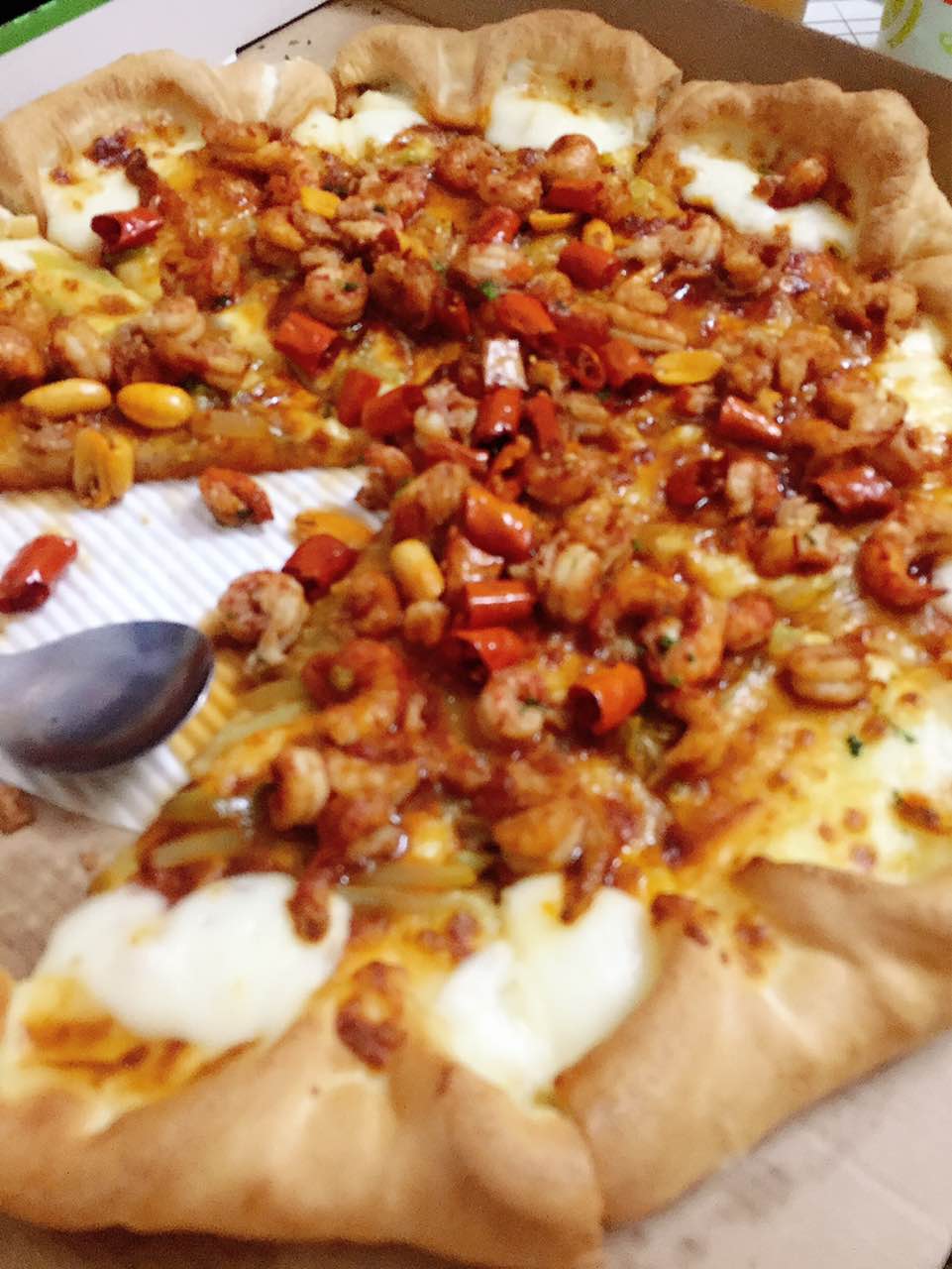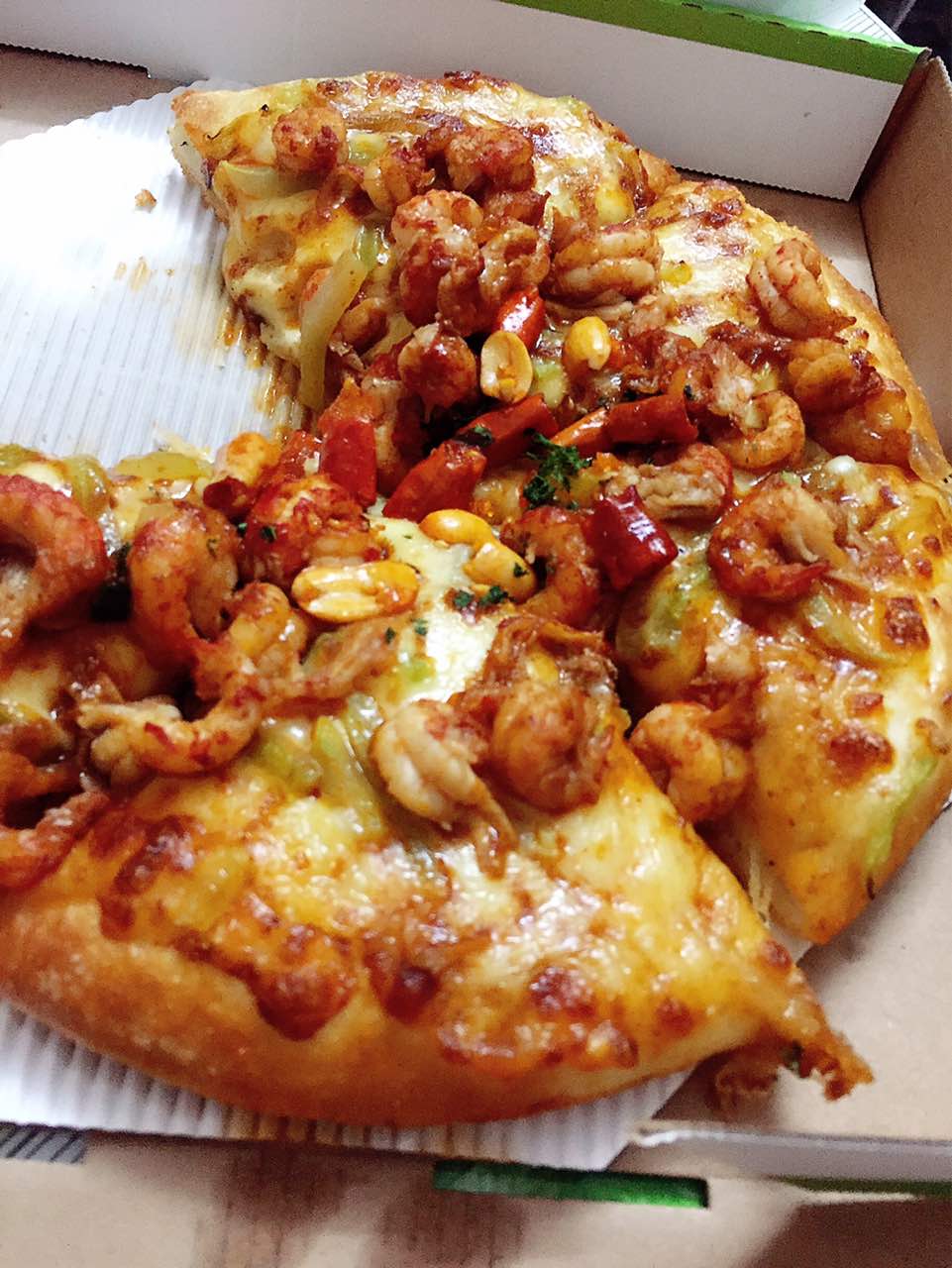 路过打包走的,味道还行,芝士的比较好吃。没有惊艳的感觉,如果冲着小龙虾去的,我建议可以直接去吃单纯的小龙虾。下载了必胜客App,原本活动有鸡翅送的,后面也忘记装给我了,回到家要评论了,我也才记起来有送鸡翅这个东西……不过等待拿披萨时间好久好久,店家送了一杯柠檬茶喝。我的鸡翅啊鸡翅,可以回去要他们给我补吗?