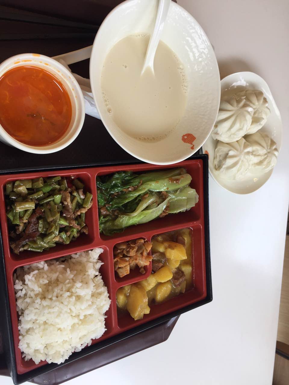 菜包软真心好吃,青菜口感也超棒。咖喱鸡肉好硬感觉放几天了的。米饭看着食欲好,吃下去硬绑绑的。