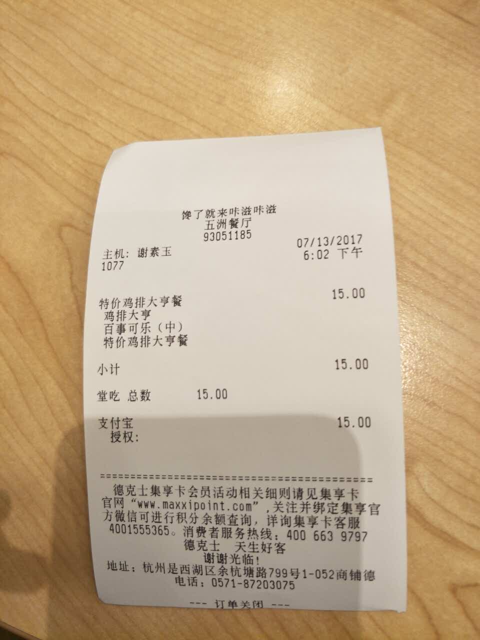 支付宝的优惠活动,门店环境还不错。德克士的鸡比较好吃,还不错,推荐吃鸡,哈哈。