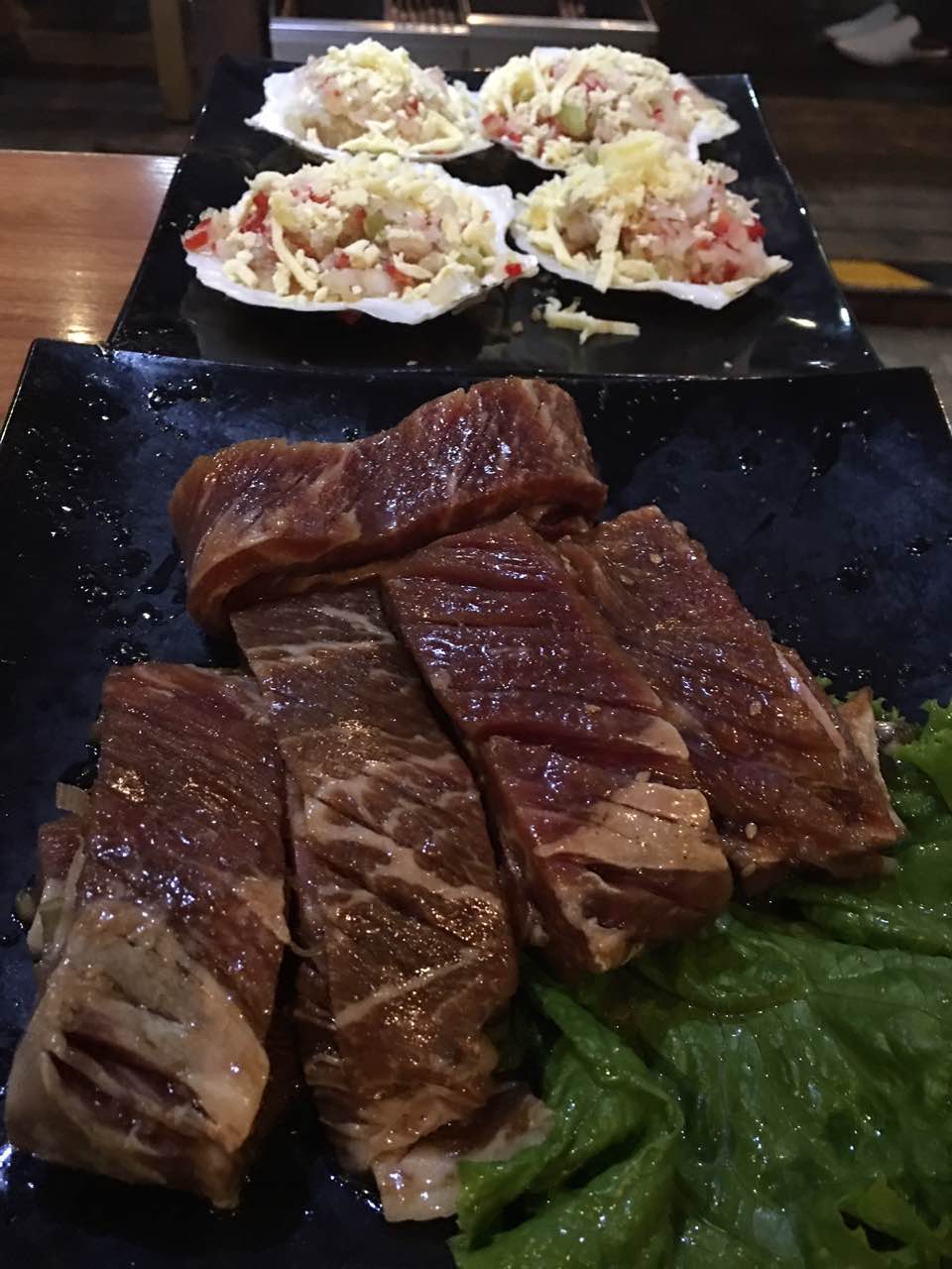 很久没来这里,团购了2人的,结果肉量非常少,而且肉质不好,里面全是筋。辣酱不辣,甜。南瓜粥也跟放了糖精似得齁。单要了调味牛排100多一份,骨头就占了一半了,肉没两块。还单要了烤扇贝12块一个,不好吃,可以说非常不好吃。非常失望,以后不会再来了