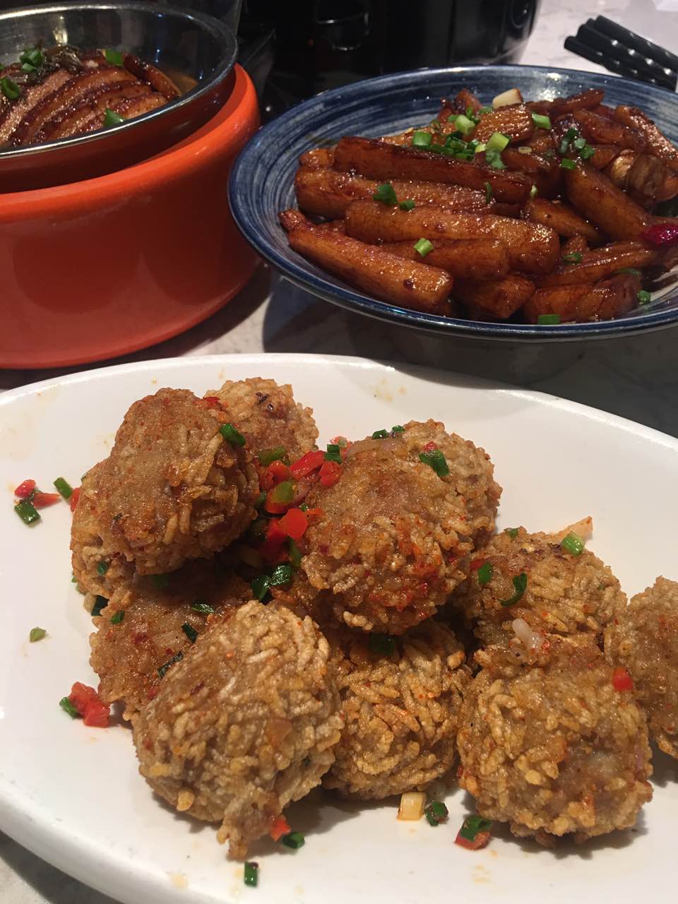 CBD宜品川位于西陵区CBD购物中心后面的广场副楼,迈步走上二楼、映入眼帘的是错落有致的餐厅大堂、餐台旁处处可见的红花绿叶。 随意点了四道菜品、如图评价如下:糯米藕元炸的外焦里嫩、川皇干捞粉丝煲鲜香略辣、扣肉和山药略咸。 服务员态度和蔼可亲、用餐感受整体还不错。
