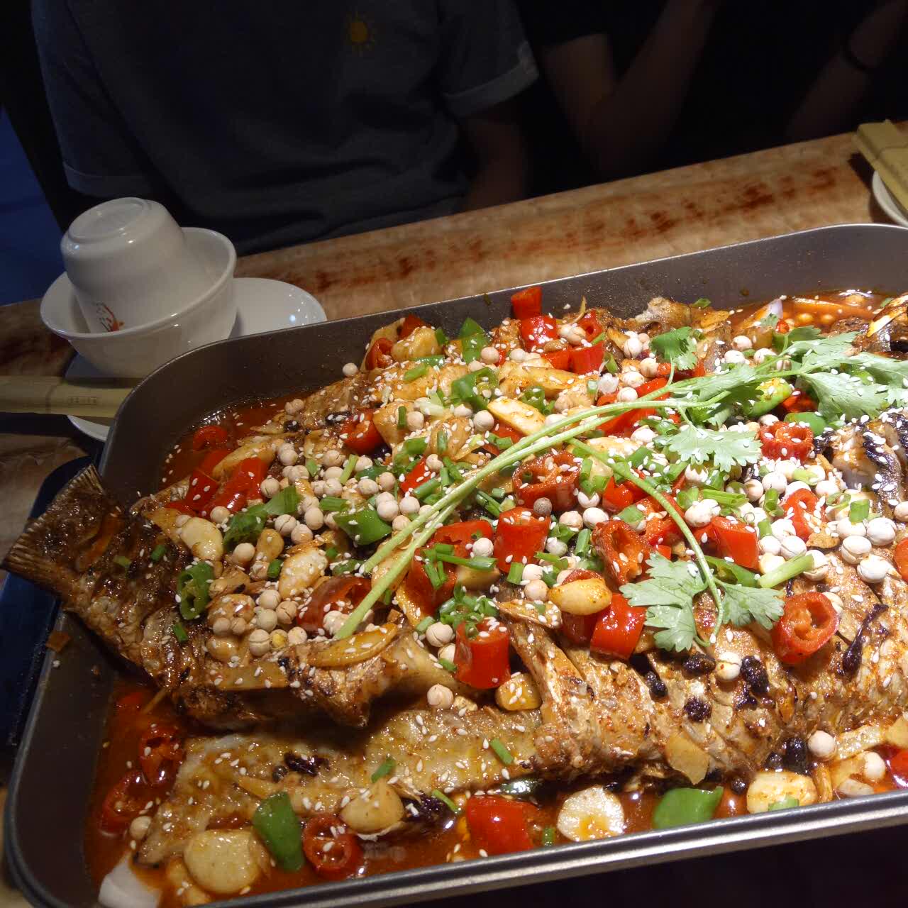 鱼很新鲜,味道也好,环境不错,一共四个人去吃的,三斤半的草鱼,加五个小菜和饮料,两百刚好吃饱