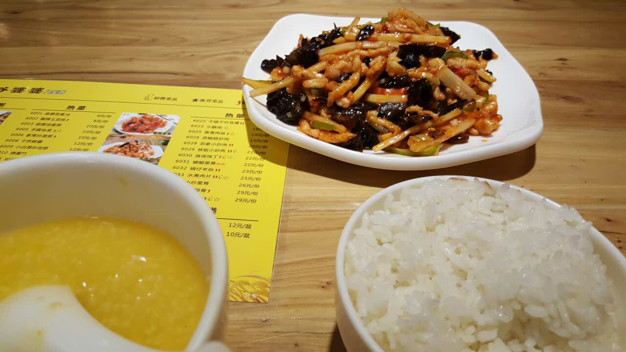 ...吃,这次中午自己去的点的鱼香肉丝,米饭,不错,小米粥没有八宝粥好喝,充值卡没有退,下次继续去吃之前别人帮外带过八宝粥和酱肉包,很好吃,这次中午自己去的点的鱼香肉丝,米饭,不错,小米粥没有八宝粥好喝,充值卡没有退,下次继续去吃
