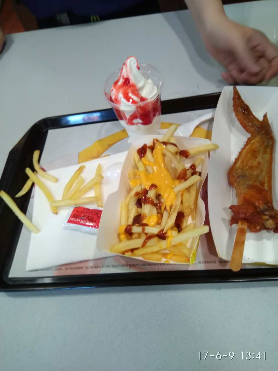 服务员不是很热情,薯条拿错了虽然给换了,但是芝士酱比较少,总体还算可以吧!
