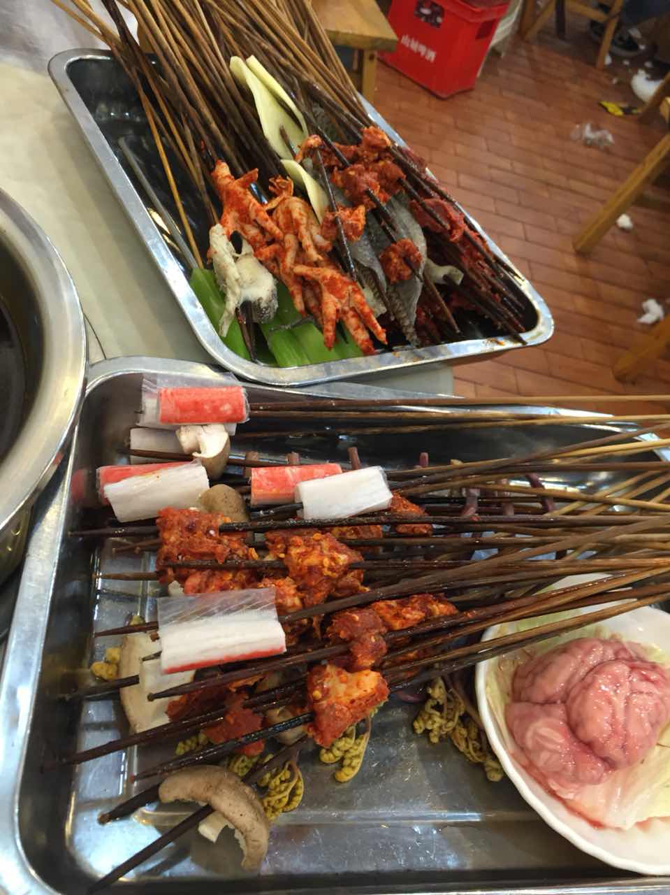 网友2016-08-06超给力好吃?两个大汉在外面要吃两百五十多的饭量还不撑,这次吃撑了才一百二十多!而且超级便宜超给力好吃?!!!!!第一口就迷上了,啊棒!很香很有味,以后再来!而且超级便宜!一斤竹签的菜才六十!两个大汉在外面要吃两百五十多的饭量还不撑,这次吃撑了才一百二十多!啊爽死了~~~~~